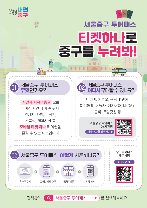 구는 투어패스 도입을 통해 개별 명소 위주의 관광을 넘어, 중구 전체를 하나의 관광권역으로 연결한다는 방침이다. 관광객이 다양한 명소와 체험 공간을 자유롭게 오가며 지역 전역을 탐방할 수 있도록 유도해 중구 내 체류 시간을 증대하고 지역경제 활성화를 꾀한다.